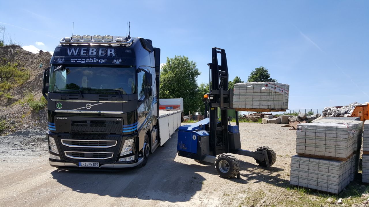 Der eigene Mitnahmestapler ermöglicht die Anlieferung bis zum End-/Privatkunden, dadurch wird kein zusätzliches Equipment benötigt - das spart Zeit und Kosten